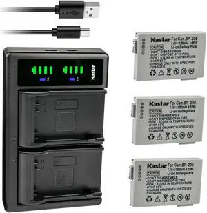 Kastar 3-Pack Battery and LTD2 USB Charger Replacement for Canon BP-208 BP208 BP-208DG Battery, Canon DC10, DC19, DC20, DC21, DC22, DC40, DC50, DC51, DC95, DC100, DC200, DC201, DC210, DC211 Cameras