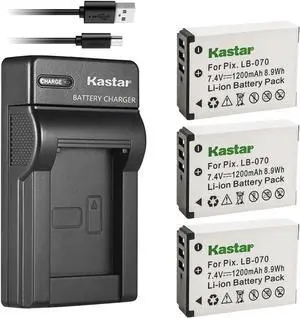 Kastar 3-Pack Battery + Slim USB Charger for Kodak LB-070 LB070 Battery and Kodak Pixpro AZ651, Pixpro AZ651 AZ652 Astro Zoom, Pixpro AZ901, PIXPRO S1, PIXPRO S-1, Minolta MN67Z Camera