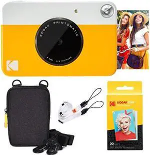 kodak printomatic instant camera yellow basic bundle + zink paper 20 sheets + deluxe case + comfortable neck strap