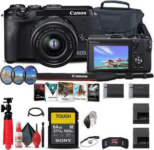Canon EOS M6 Mark II Mirrorless Camera (Black) with 15-45mm Lens + More