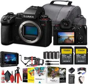 Panasonic Lumix S5 IIX Mirrorless Camera + 4K Monitor + 2 x 64GB Memory Cards + More
