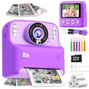Kids Camera Instant Print, 1080P HD Digital Cameras for Boys and Girls with 32G Card & 200+ Photo Papers, Toy for Girls Age 3-16, 3 4 5 6 7 8 9 10 Year Old Toddler and Teenagers Purple