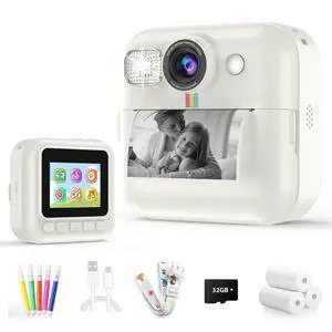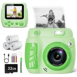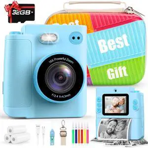 Kids Camera Instant Print, 1080P HD Digital Video Kids Instant Camera for Girl Boys, Toddler Toys for Children Age 3-12 with 3 Rolls Print Paper & 32G Card (Blue)