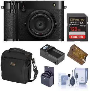 Fujifilm GFX100RF Digital Camera, Black, Bundle with 128GB Memory Card, Shoulder Bag, Extra Battery, Smart Charger Base and Plate, 49mm Filter Kit