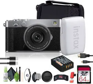 FUJIFILM X Digital Camera (Silver), MINI LINK 3 Smartphone Printer(Clay White)