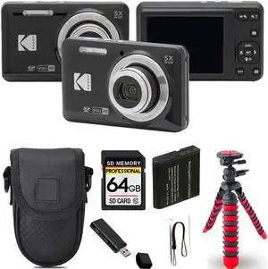 Kodak PIXPRO FZ55 Digital Camera (Black)+ Spider Tripod + Case - 64GB Kit