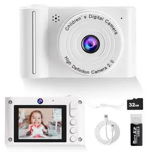 Small Digital Camera,20MP Digital Point and Shoot Camera,with 8X Zoom,with 32GB SD Card,Compact Camera for Kids Teen(White)