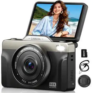4K Digital Cameras for Photography, 64MP Autofoucs Vlogging Camera for YouTube with 3" 180° Flip Screen,16X Zoom Compact Travel Camera for Beginners Teens with 64GB Card (Black)
