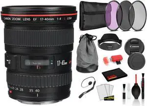 Canon EF 17-40mm f/4L USM Lens (8806A002) Lens with Bundle includes 3pc Filter Kit) + Deluxe Lens Cleaning Kit + More