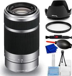 Sony E 55-210mm f/4.5-6.3 OSS Lens (Silver) New in White Box - 7PC Accessory Kit