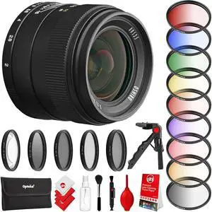 Oshiro 35mm f/2 LD UNC AL Wide Angle Full Frame Prime Lens for Nikon Digital SLR Cameras Bundle with Opteka 55mm 10x HD II Professional Macro Lens for Digital Cameras and Accessories (6 Items)