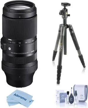 Sigma 100-400mm f/5-6.3 DG DN OS Contemporary Lens for Sony E, Bundle with Vanguard VEO 3 GO 235AB Al Travel Tripod with T-50 Ball Head, Cleaning Kit, Cleaning Cloth