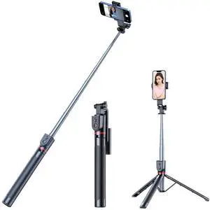 Selfie Stick Tripod, 3-in-1 Extendable Aluminum Phone Tripod with Detachable Bluetooth Remote, Compatible with iPhone 17/16/15/14/13/12/11/11 Pro/XS Max/XR and Samsung Smartphones, Black