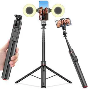 ORMOS Selfie Stick Tripod, Aerospace-Grade Aluminum Alloy & ABS Plastic, Universal Compatible for Smartphones, Black, Extendable with Fill Light & Wireless Remote, 69.3 Inches Maximum Height
