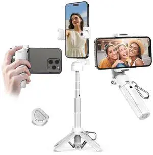 Ormos 3-in-1 Phone Selfie Tripod, Portable Foldable Pocket Size, 360° Rotation, Bluetooth Remote Control, Extendable to 17 Inches, Cold Shoe Mount, Black