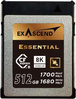 Exascend 512GB Essential CFexpress Card Type B, up to 1,700MB/s, Compatible with Canon, Nikon, Panasonic and Other Cameras