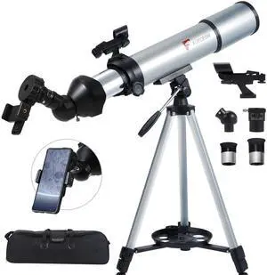 Telescope for Adults Beginners, 70mm Aperture 400mm Refractor Telescopes for Astronomy Beginners, Portable Travel Telescope Astronomy Gifts (40070)Part Number: TELe-40070Part: TELe-40070Type: StandardSpecifications: Set of Telescope, 70, 400mm, 150, Manual Focus, Reflex, Barlow, Wireless smartphone control, high magnification range, and easy object location with finderscope, 40070, QniucoModel #: 646087442783