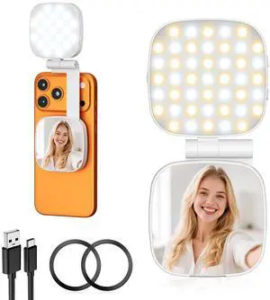 Magnetic Selfie Light, Rechargeable Phone Light Compatible with iPhone Magsafe CRI95+ Portable LED Ring Fill Light with Mirror Selfie Light for Selfies Photography Zoom Video Recording Makeu