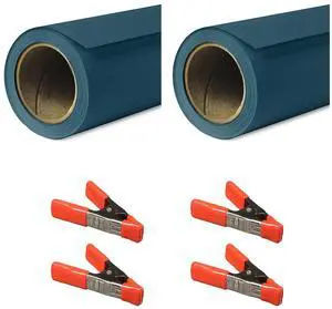 Savage 26"x36' Widetone Seamless Background Paper, Gulf Blue, 2-Pack, Bundle with 4x 1-1/4x1" Steel Spring Orange Clamp