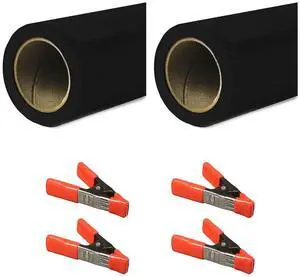 Savage 26"x36' Widetone Seamless Background Paper, Black, 2-Pack, Bundle with 4x 1-1/4x1" Steel Spring Orange Clamp