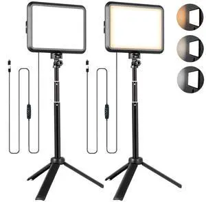 LED Photography Lighting Kit, 2-Pack 8 Portable Video Light with Adjustable Tripod Stand, 2800K-6500K Dimmable Softlight Studio Light for Zoom, Game Streaming, YouTube