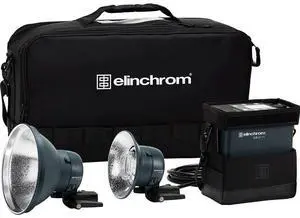 Elinchrom ELB 500 TTL Dual To Go Kit, Includes 2x ELB 500 Flash Head, 7" and 5.3" Reflector, Charger, Battery, Snappy Carry Bag with Shoulder Strap, ProTec Location Bag