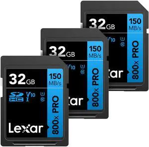 32GB (3-Pack) High-Performance 800x PRO SD Card, UHS-I, C10, U1, V10, 4K, Up to 150MB/s Read Memory Card, for Point-and-Shoot & Mid-Range DSLR Cameras, HD Camcorders (LSD0800P032G-B3NNU)