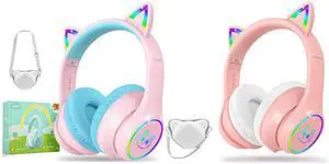 iClever BTH22 Kids Bluetooth Headphones, 60H Play Time, USB C Fast Charging, Bluetooth 5.4, AUX Cord,Safe Volume 74/85 dBA,Over Ear Kids Headphones Wireless for iPad/Tablet/Travel/School, Pink