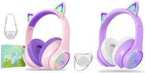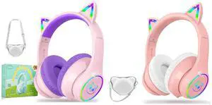 gorsun Kids Bluetooth Headphones, Portable Wireless Headset for Kids, Bluetooth 5.3, Over-Ear Cat Ear Toddler Headphones with Microphone, 85dB Volume Limited, AUX Cord,40 Hours Playtime(Purple)