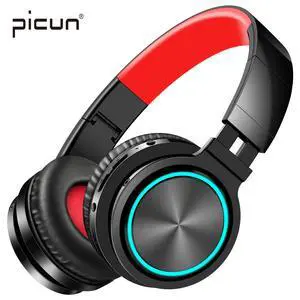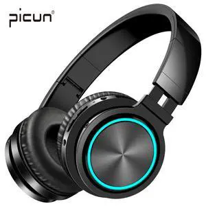 Picun Bluetooth Headphones 25 Hours Playtime Cool LED HiFi Stereo Wireless Headphones with HD Mic, Foldable Headset with Deep Bass, Soft Earmuffs, TF/Wired Mode Tablet PC TV (Black)