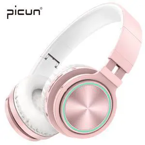 Picun Wireless Headphones 25 Hours Playtime Romantic LED Bluetooth Headphones, HiFi Stereo Headphones with HD Mic, Foldable, Soft Snug Protein Earpads, TF/Wired Mode for Women Girls Kids (Rose Gold)