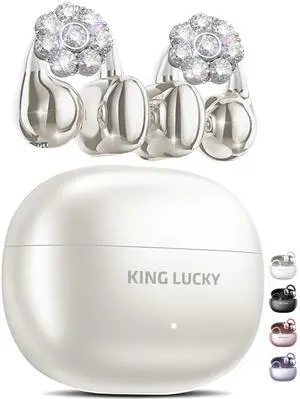 King Lucky Clip-on Earbuds Jewelry Wireless Bluetooth 5.4 Comfortable Open Ear Headphones with Detachable Flower Earrings,IPX5 Waterproof, 50H Play, for Women, Gift,Parties,Festival (White)