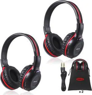 SIMOLIO 2 Pack of Wireless Car Headphones, 2 Channel IR Wireless Headphones for Kids, Not Bluetooth, in Car DVD Headsets with Storage Bag for Vehicle Universal Rear Entertainment System