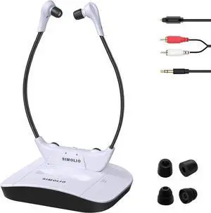 SIMOLIO Dual Wireless Headphones for TV Watching with Spare Battery for Seniors and The Elderly, Tone and Balance Control, Ambient Sound Listener, 164 ft Work Range, No Audio Delay, SM-824D2