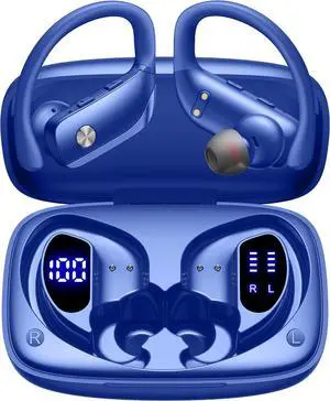 Hitoor Wireless Earbuds, Bluetooth 5.4 Headphones Sport, 75H Stereo Wireless Earphones with 4 ENC Noise Canceling Mic, IP7 Waterproof Ear Buds with Earhooks,LED Display Wireless Headphones for Running