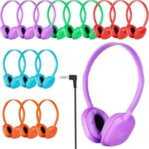 Maeline Bulk Classroom Headphones for Students, 10 Pack On-Ear Wired Headsets, Adjustable, Lightweight, 3.5mm Plug, School Testing, Library, Travel, Labs Multi Color