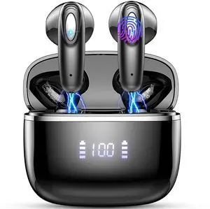 AUTYUE Wireless Earbuds with Bluetooth 5.4 Low Latency, HD Sound,60H Playback LED Power Display Earphones Comfortable Fit Waterproof in-Ear Headphones with Mic for Multi-Scenario Suitable for All Ages