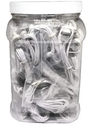 TFD Supplies Wholesale Bulk Earbuds Headphones 50 Pack in Storage Tub - White/Gray