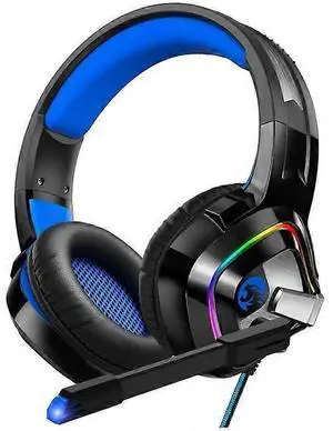 Blue Gaming Headset for PS4, Xbox One, PC with Noise Canceling Mic & RGB Lights
