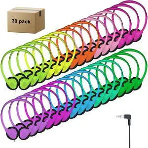 JINWAYBST Headphones Bulk for Classroom, Wholesale Childrens Headphones with 3.5 mm Jack for Kids,School, Student, Libraries, Computer Lab, Testing Centers (30 Pack Multi-Color)