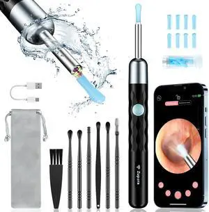 ZUPORA Ear Wax Removal, Ear Camera with 1440P HD, Ear Cleaner with Camera Built-in WiFi, Earwax Removal Kit with 6 Ear Pick, Otoscope with Lights, Ear Cleaning Kit for Android and iOS (Black)