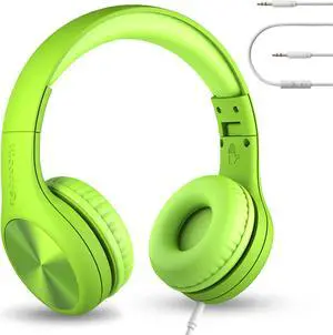 LilGadgets Connect+ Pro Wired Kids Headphones for School with Microphone, Volume Limiting & Noise Cancelling Over-Ear Headset with Cord, SharePort Technology & SoftTouch Padding, Green