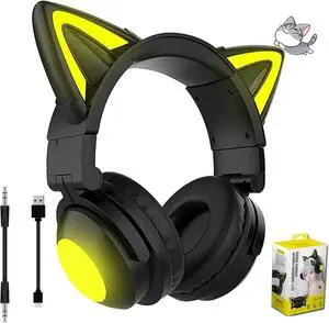 Riwbox CT-7 Cat Ear Bluetooth Headphones, LED Light Up Bluetooth Wireless Over Ear Headphones with Microphone and Volume Control for Travel/School/Smartphones/Laptop/PC/TV