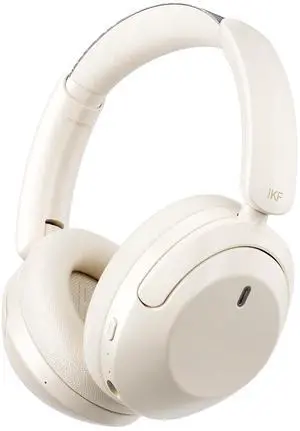 iKF T3 Wireless Bluetooth Over-Ear Headphones, 43dB Active Noise Cancelling, HiFi Sound with 3 EQ Modes, 125H Playback, Ambient Sound Mode, USB Wired Audio, Foldable Comfortable Design (Offwhite)