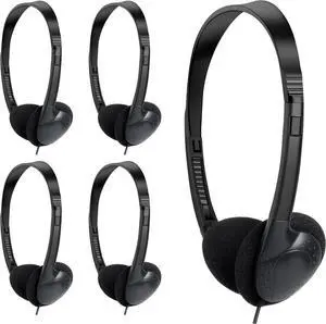 Classroom Headphones Bulk 5 Pack, Student On Ear Color Varieties, Comfy Swivel Earphones for Library, School, Airplane, Kids, for Online Learning and Travel, Noise Stereo Sound 3.5mm Jack (Black)