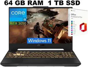 ASUS TUF F15 Gaming Laptop, 15.6" FHD 144Hz Display, Intel Core i5-12500H 12-Core Processor, GeForce RTX 3050 6 GB GDDR6, 64GB DDR4 1TB PCIe SSD, Wi-Fi 6, Windows 11 Pro ,Office 2021 License