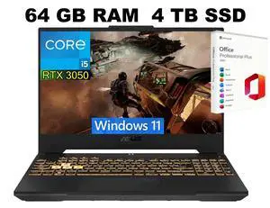 ASUS TUF F15 Gaming Laptop, 15.6" FHD 144Hz Display, Intel Core i5-12500H 12-Core Processor, GeForce RTX 3050 6 GB GDDR6, 64GB DDR4 4TB PCIe SSD, Wi-Fi 6, Windows 11 Pro ,Office 2021 License