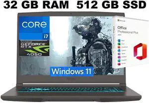MSI Thin 15 Gaming Laptop, 15.6" FHD 144Hz, Intel Core i7-13620H 10 cores Processor, NVIDIA GeForce RTX 4050 GDDR6 6GB, 32GB DDR5 512GB PCIe SSD, WiFi 6E, Windows 11 ,Office 2021 License