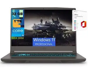 MSI Thin 15 Gaming Laptop, 15.6" FHD 144Hz, Intel Core i5-13420H 8 cores Processor, NVIDIA GeForce RTX 3050 4 GB, 32GB DDR5 1 TB PCIe SSD, Backlit Keyboard, Windows 11 Pro,Office 2024 License
