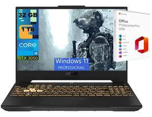 ASUS TUF F15 Gaming Laptop, 15.6" FHD 144Hz Display, Intel Core i5-12500H 12-Core Processor, GeForce RTX 3050 6 GB GDDR6, 32GB DDR5 1 TB PCIe SSD, Wi-Fi 6, Windows 11 Pro,Office 2024 License